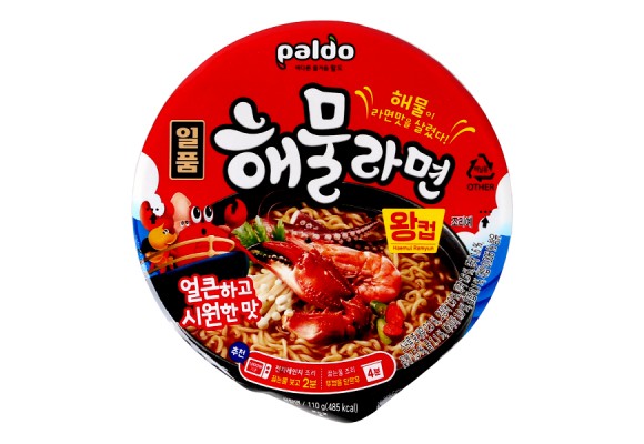 海鮮が決め手のカップラーメンです。イカ、エビ、ムール貝、エボヤにつるつるとした麺がおいしいラーメンです。